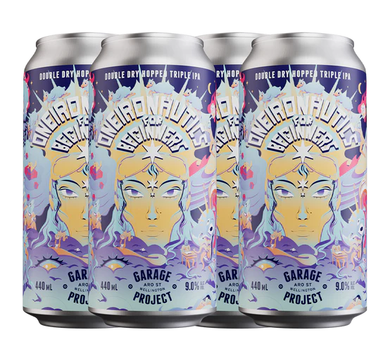 Oneironautics by Garage Project is a triple-hazy IPA brewed for dreamers and hop lovers alike. Featuring a soft, hazy base of oats, plump wheat, and light lager malt, this brew delivers a luscious mouthfeel that’s the perfect canvas for a celestial dry hop combo: Mosaic, Peacharine, Nectaron, and Krush. Bursting with bright mango, juicy passionfruit, and sun-ripened stone fruit, this double dry-hopped delight captures the essence of a lucid dream. Named for the art of dream travel, Oneironautics invites drinkers to let go, sip deeply, and explore a vibrant, fruit-saturated escape—one smooth, dreamy haze at a time. Sweet dreams indeed.