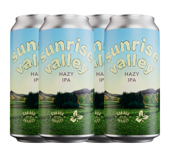 Originally brewed in collaboration with Trillium in Canton, Massachusetts, Sunrise Valley by Garage Project is a groundbreaking hazy IPA showcasing a hop-free boil and massive dry hop. Bursting with lemon zest and freshly peeled orange, it finishes refreshingly crisp. Nelson Sauvin and Rakau hops from Upper Moutere’s Sunrise Valley add bright citrus and wine-like character. First brewed in May 2020 and featuring artwork by Ben Leon, this brew was once radical in technique — now iconic in flavour. It’s a beer rooted in innovation, terroir, and transpacific creativity, celebrating bold hops and fresh perspectives.