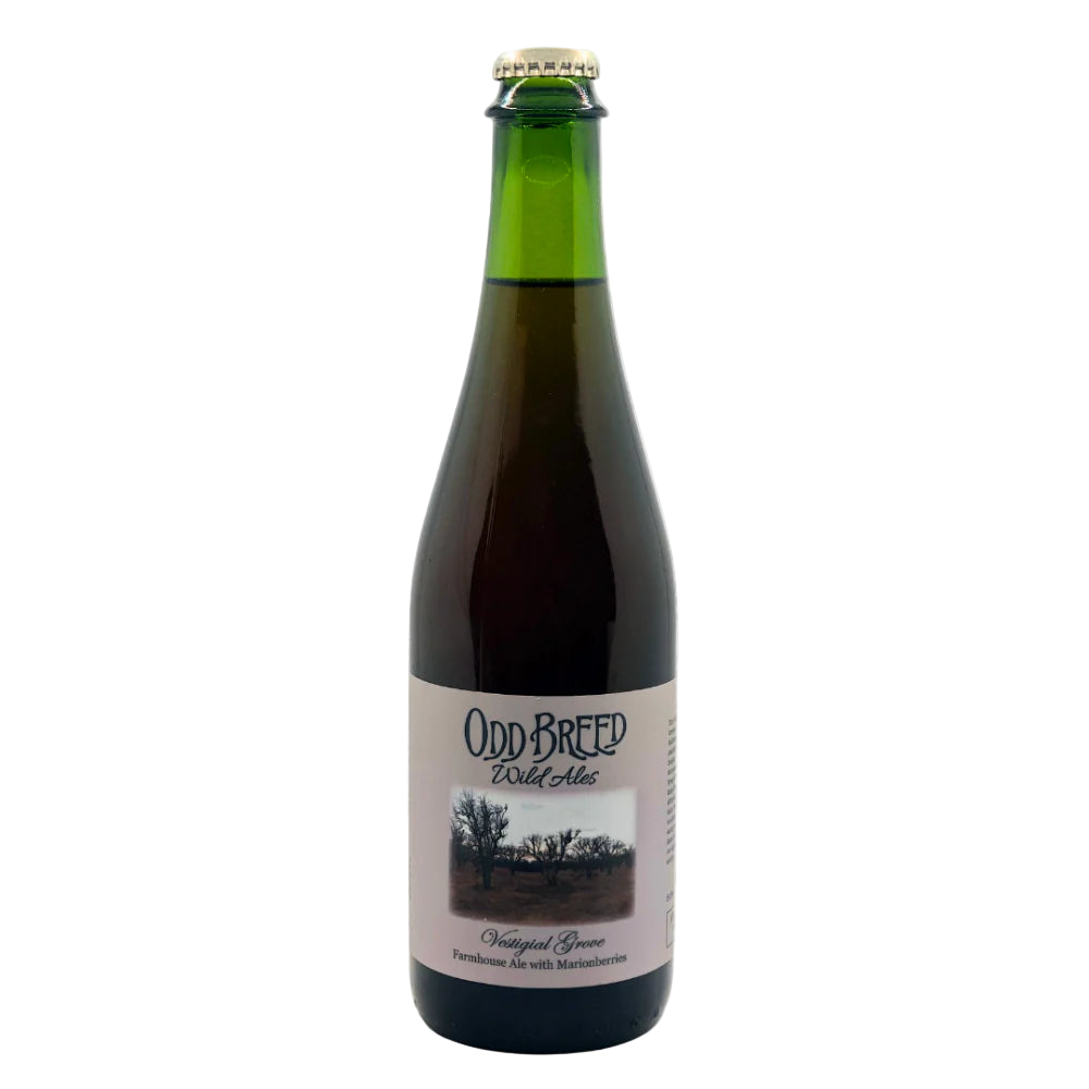 Vestigial Grove by Odd Breed Wild Ales (Florida, USA) is a 5.5% ABV farmhouse‑style wild ale that combines barrel‑aged complexity with fruity depth. Brewed with pilsner malt and Hallertau Mittelfrüh hops, it was then aged on Oregon marionberries in French oak puncheons and finished with Belgian candi syrup. The result: a golden‑bronze hue, soft funk, berry‑driven aroma (blackberries, plums, dates) and a lightly tart, oak‑tinged finish. Easy‑drinking yet layered, Vestigial Grove proves that wild ales can be approachable and richly nuanced—ideal for those exploring beyond standard craft beer flavour.